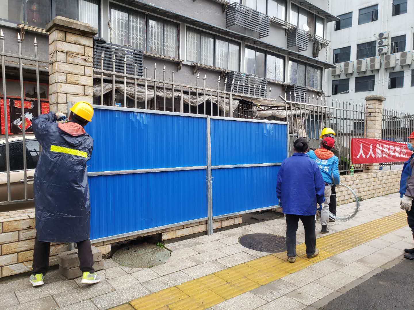 14日上午7點,漢陽市政八個分子公司550余名施工人員在漢陽全區(qū)全面鋪開工作。并利用水馬、鐵馬、鐵皮圍擋等對七里一村、磨山南苑小區(qū)等進行臨時封閉施工。預計14日晚12點之前可完成漢陽169處點位的臨時圍擋施工。