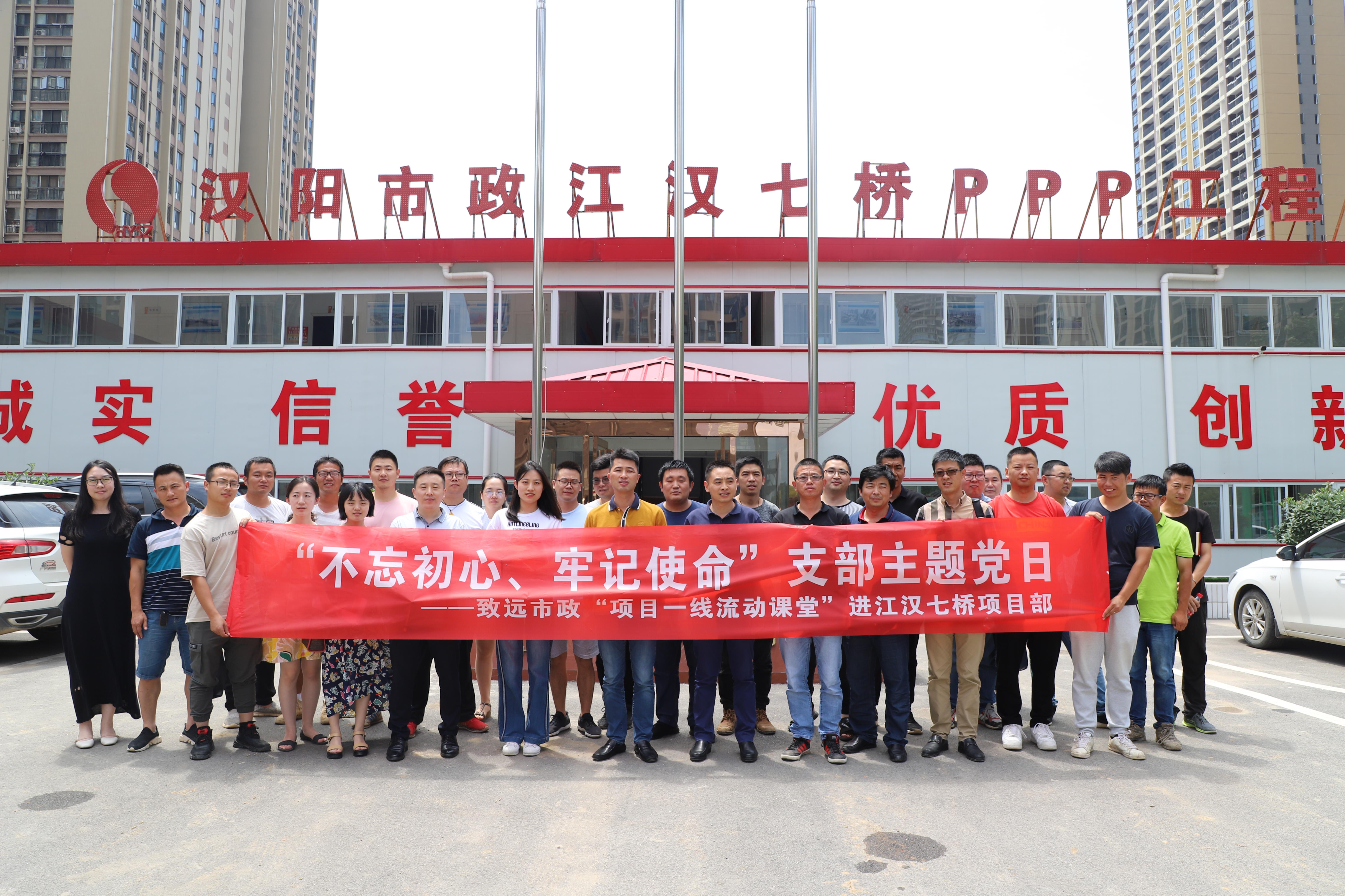 ? ? ??6月20日,致遠(yuǎn)市政黨支部將“項(xiàng)目一線流動(dòng)課堂”搬進(jìn)基層項(xiàng)目部,帶領(lǐng)全體黨員深入江漢七橋項(xiàng)目部開(kāi)展了“不忘初心、牢記使命”支部主題黨日活動(dòng)。