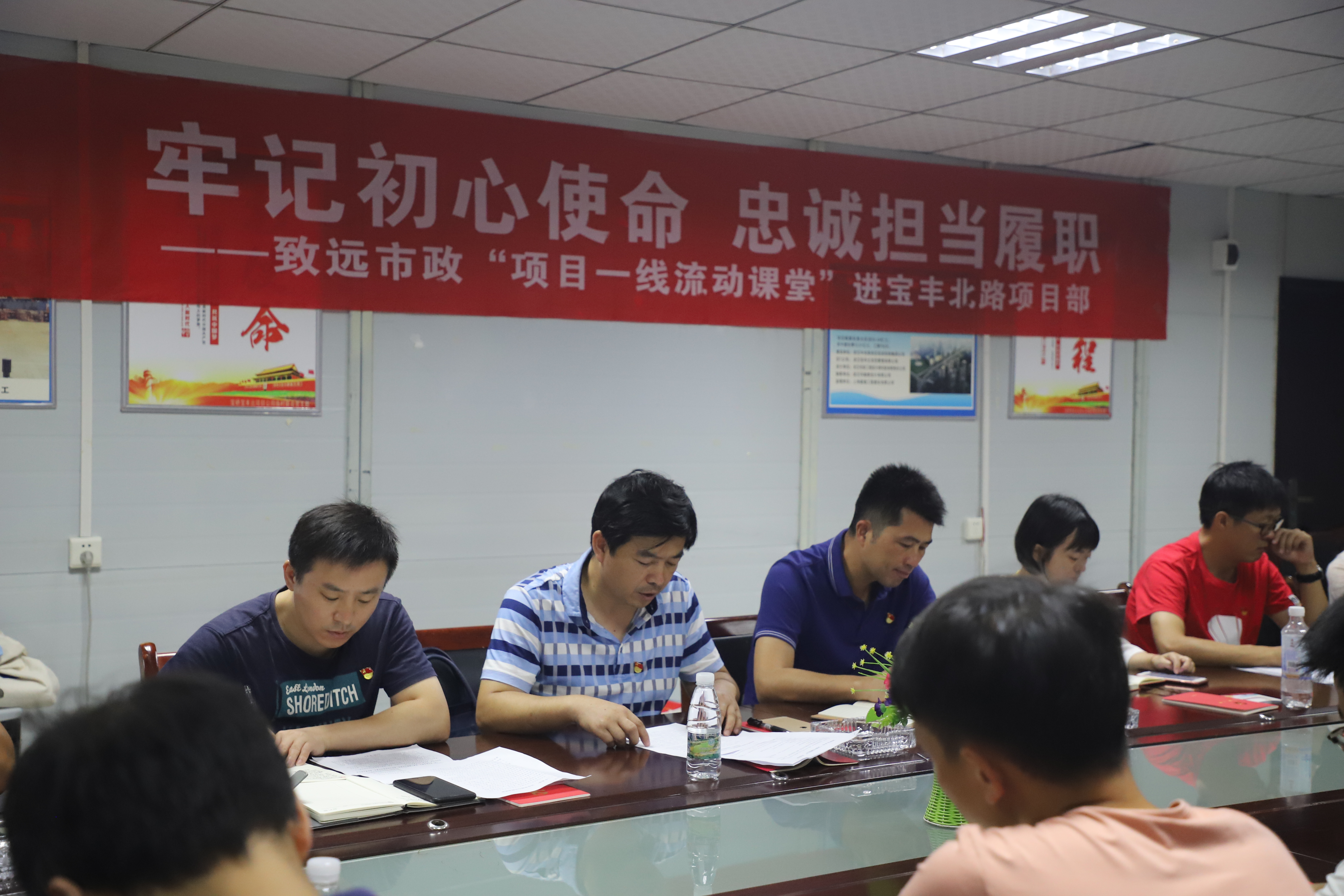 ? ? ? 8月4日,致遠(yuǎn)市政“項(xiàng)目一線流動(dòng)課堂”第二期走進(jìn)寶豐北路項(xiàng)目部,組織開(kāi)展“牢記初心使命 忠誠(chéng)擔(dān)當(dāng)履職”8月支部主題黨日活動(dòng)。