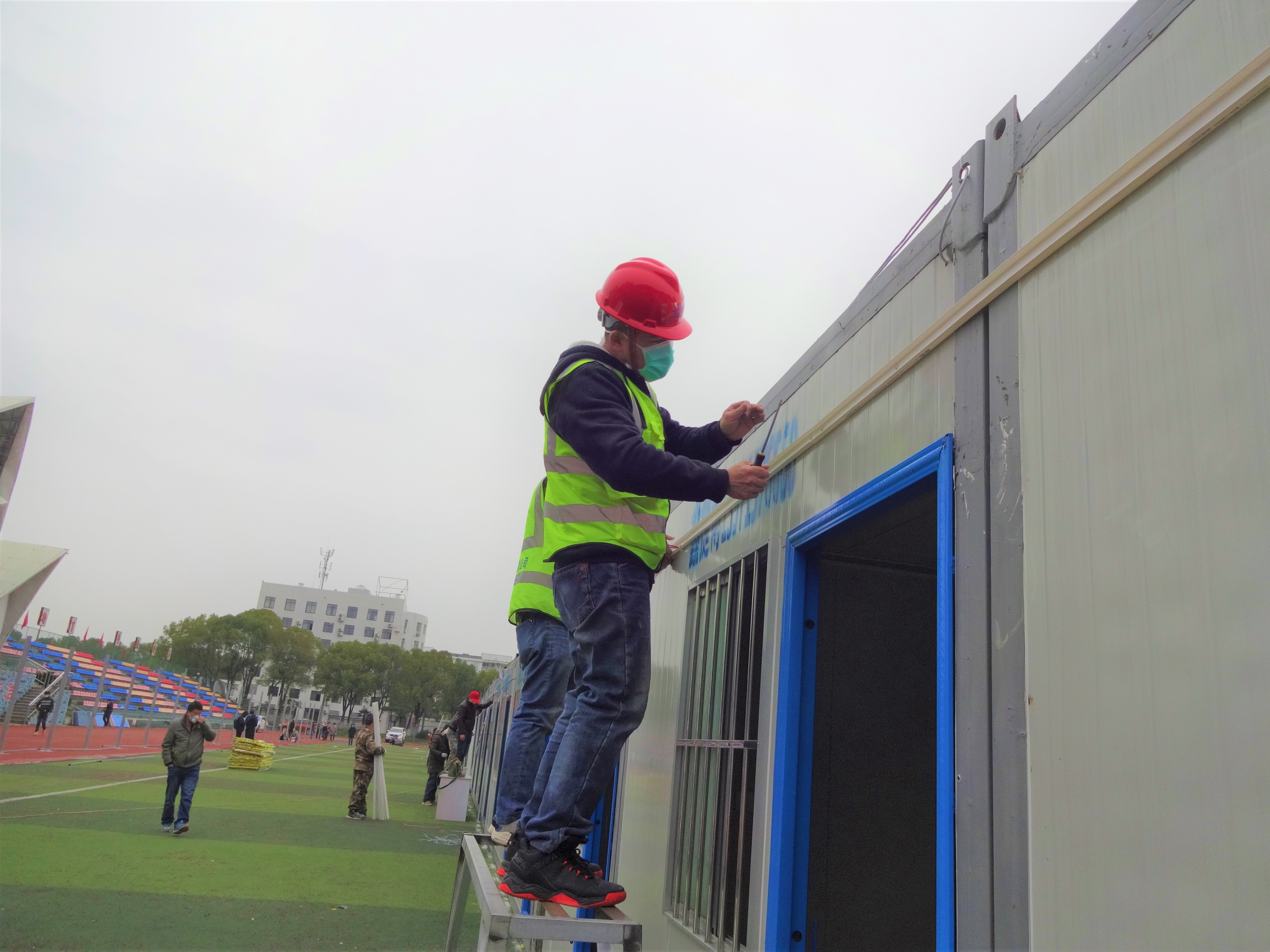 施工人員正在進行板房搭建