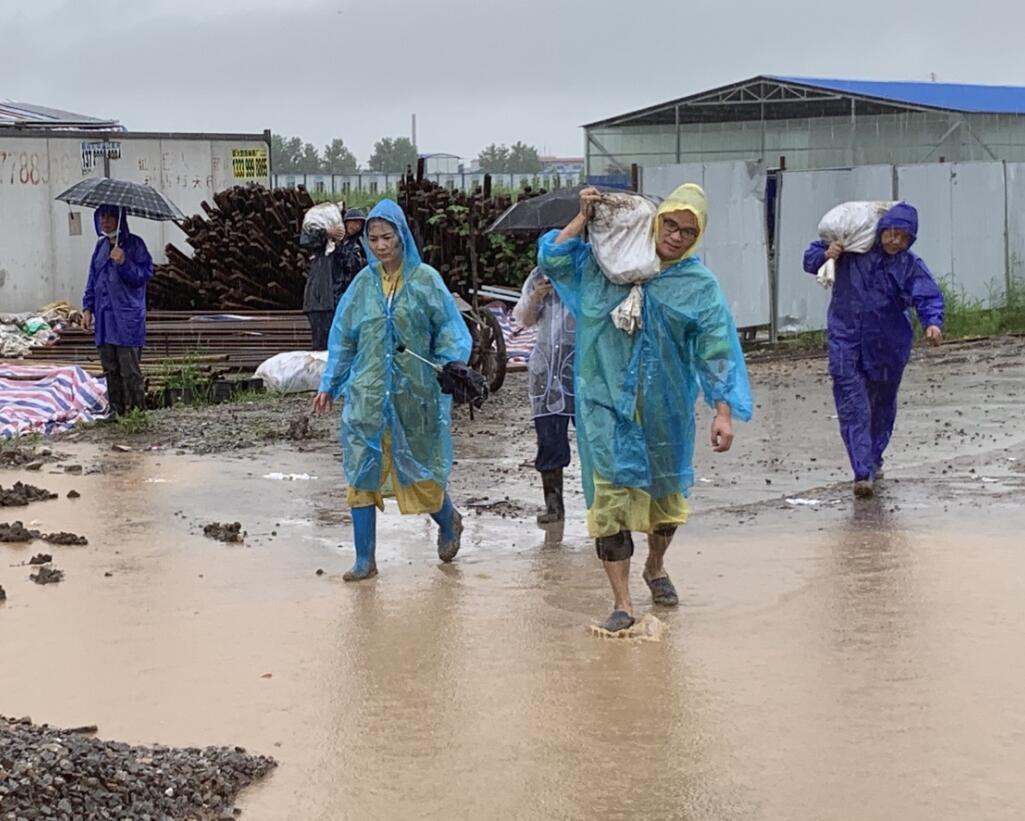 ? ? ? 危機(jī)面前,博宏公司常務(wù)副總經(jīng)理蘇琦緊急趕赴仙桃,迅速組織管理人員及工人近百人,調(diào)用大小挖機(jī)十余臺(tái),全力以赴冒雨搶險(xiǎn),開(kāi)展防汛救災(zāi)。為堵住決口,搶險(xiǎn)隊(duì)員冒著大雨扛著重達(dá)50余斤的土石袋,奔走在泥濘不堪的河堤上。隨著一袋袋土石運(yùn)到堤壩上,隊(duì)員們手拉肩扛用生命筑起“生命之堤”,暫時(shí)擋住了洶涌的洪水。但隊(duì)員們沒(méi)有時(shí)間休憩,為了徹底堵住決口,必須用鋼管加固河堤,現(xiàn)場(chǎng)人員又連夜焊接搬運(yùn)鋼管,爭(zhēng)分奪秒堵堤搶險(xiǎn)。搶險(xiǎn)隊(duì)員們眾志成城,萬(wàn)眾一心,奮戰(zhàn)至7日凌晨1點(diǎn),最終用鋼板堵住了決口處,險(xiǎn)情終于得到緩解。
