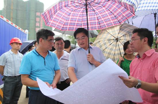 8月8日下午,武漢市副市長張光清一行十余人,冒雨來到常青北路污水泵站視察工程進展情況,武漢市建委、地產(chǎn)、城投及東西湖區(qū)水務局副局長朱傳彪等相關負責人陪同視察。