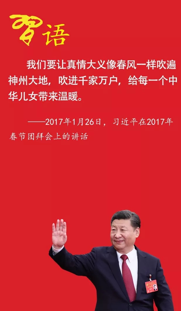 真情不虛就是要忠誠老實、誠懇待人,真情不私就是要砥礪品德、剛正無私,真情不妄就是要光明磊落、坦坦蕩蕩。唯有如此,親情、友情、愛情、同志之情才能高尚恒久,才能有益于自己,有益于親人、友人、所愛之人、同志之人,也才能鑄就守望相助、天下同心的人間大愛。我們要讓真情大義像春風(fēng)一樣吹遍神州大地,吹進千家萬戶,給每一個中華兒女帶來溫暖。