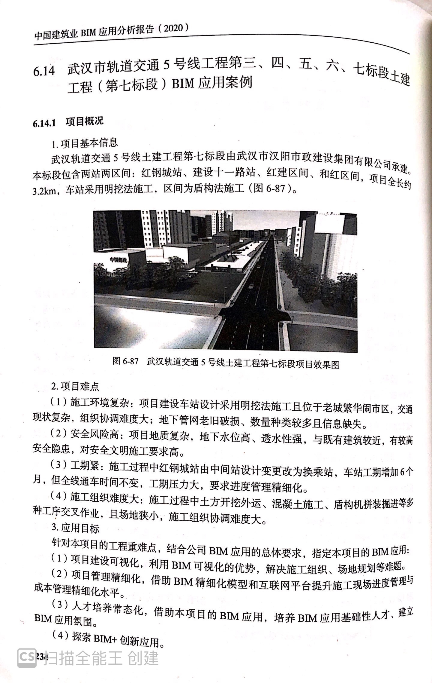 《報告》第6章BIM技術(shù)應(yīng)用典型案例匯編章節(jié)中,以漢陽市政四公司承建的“武漢市軌道交通5號線第七標(biāo)段土建工程BIM技術(shù)應(yīng)用成果”為典型案例,進行展示與分析。此章節(jié)從項目概況、BIM應(yīng)用方案、BIM實施過程、BIM應(yīng)用效果總結(jié)四個方面,對5.7標(biāo)項目BIM技術(shù)應(yīng)用情況進行了全面且詳細的介紹。