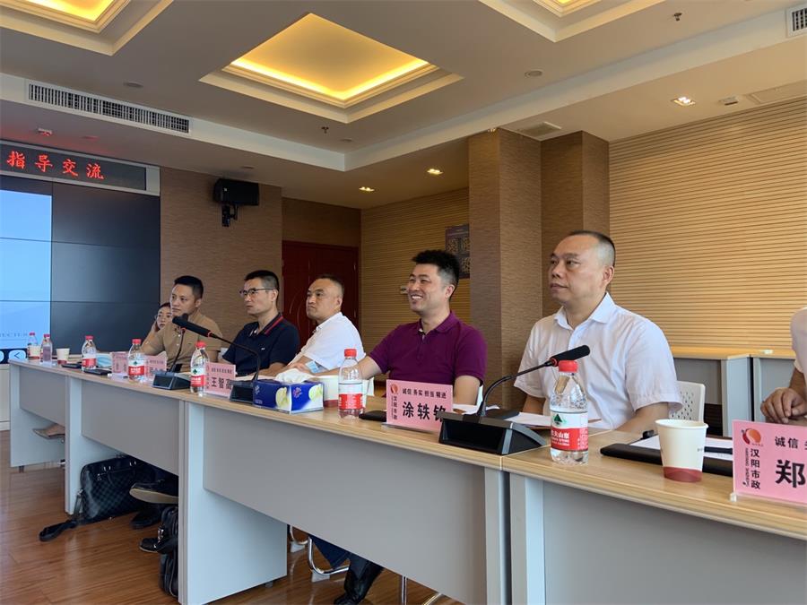 王智高向晉江城建集團一行的到來表示熱烈歡迎,并介紹了漢陽市政的發(fā)展歷程和業(yè)務概況。同時,涂軼銘就合資公司、城市運維情況,鄭佳針對綠化管養(yǎng)方面先后進行介紹。