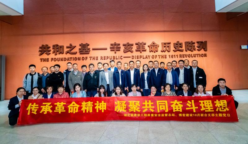 10月14日,湖北省建設(shè)工程質(zhì)量安全監(jiān)督總站(簡稱“省質(zhì)安總站”)與漢陽市政博宏公司聯(lián)合開展“傳承革命精神,凝聚共同奮斗理想”10月主題黨日活動。省質(zhì)安總站黨支部書記、站長楊碧華,副站長丁建平、副站長徐建軍,漢陽市政博宏公司黨支部書記、董事長鄒勇,總經(jīng)理蘇琦、黨支部副書記郭一清、副經(jīng)理辛桂華等共計40余名黨員同志參與此次活動。