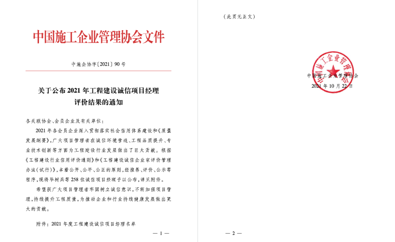 近日,中國(guó)施工企業(yè)管理協(xié)會(huì)傳來(lái)好消息,漢陽(yáng)市政黨委書記、董事長(zhǎng)嚴(yán)悌文榮獲“2021年工程建設(shè)誠(chéng)信企業(yè)家”,漢陽(yáng)市政七公司總工程師羅艷明榮獲“2021年工程建設(shè)誠(chéng)信項(xiàng)目經(jīng)理”。