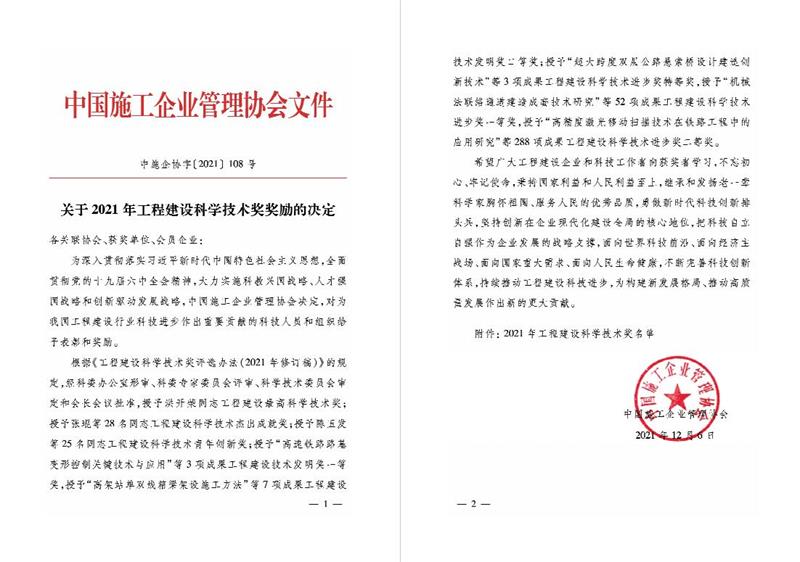 本次獲得國家級(jí)科學(xué)技術(shù)獎(jiǎng)項(xiàng)的認(rèn)定,是對(duì)公司長期堅(jiān)持重視科技研發(fā)工作、致力于從實(shí)際生產(chǎn)需求出發(fā)、解決項(xiàng)目施工各項(xiàng)技術(shù)難題的高度肯定!公司也將依托勞模創(chuàng)新工作室的專業(yè)研發(fā)平臺(tái)和技術(shù)創(chuàng)新人才,繼續(xù)堅(jiān)持把科技自立自強(qiáng)作為企業(yè)發(fā)展的戰(zhàn)略支撐,不斷完善科技創(chuàng)新體系,持續(xù)推動(dòng)工程建設(shè)科技進(jìn)步,為構(gòu)建行業(yè)新發(fā)展格局、推動(dòng)行業(yè)高質(zhì)量發(fā)展作出新貢獻(xiàn)。