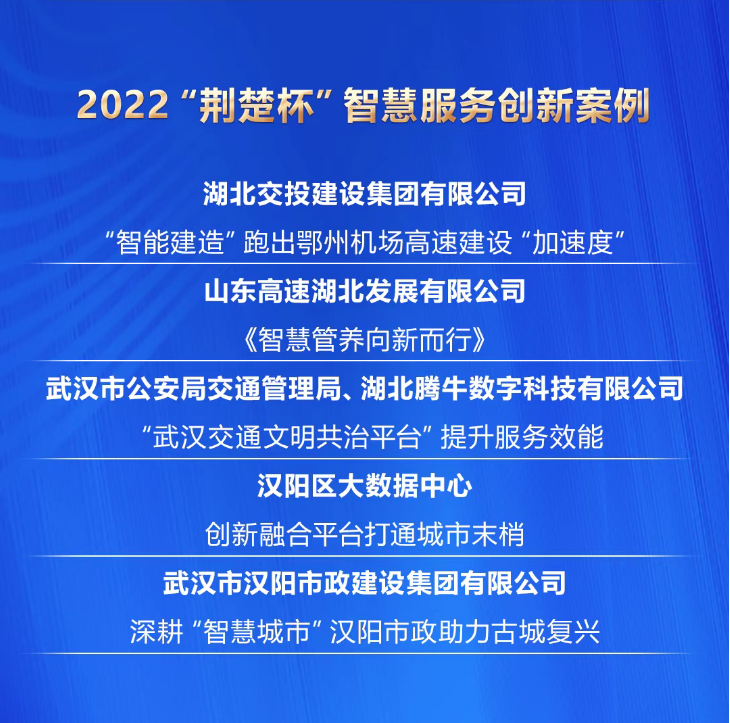 2月16日,由湖北日報傳媒集團主辦,荊楚網(wǎng)(湖北日報網(wǎng))、華中科技大學國家治理研究院和楚天輿情數(shù)據(jù)研究院承辦的“楚治——2022‘荊楚杯’社會治理創(chuàng)新十大案例”公布獲獎名單,由漢陽市政申報的漢陽智慧城建一體化平臺項目案例被評選為智慧服務創(chuàng)新案例。