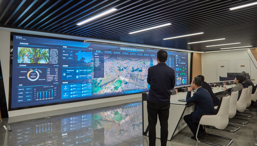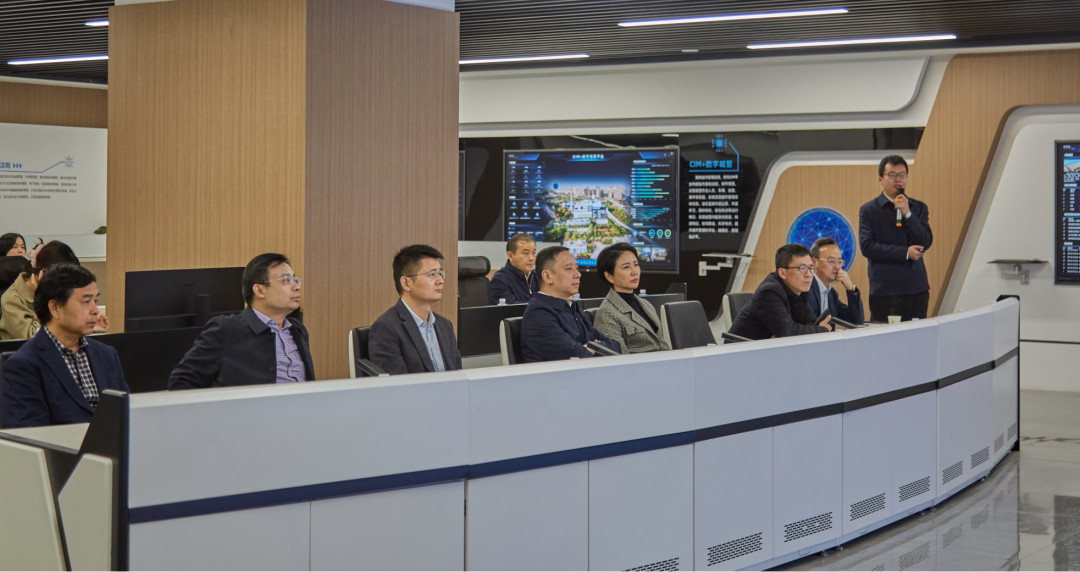 陳勁超一行來到漢陽市政建設(shè)大廈,參觀漢陽市政數(shù)智化管理中心,聽取了漢陽區(qū)城市數(shù)字公共基礎(chǔ)設(shè)施建設(shè)情況的匯報,并就漢陽區(qū)城市信息模型(CIM)平臺項目的建設(shè)及運營情況進行現(xiàn)場交流。